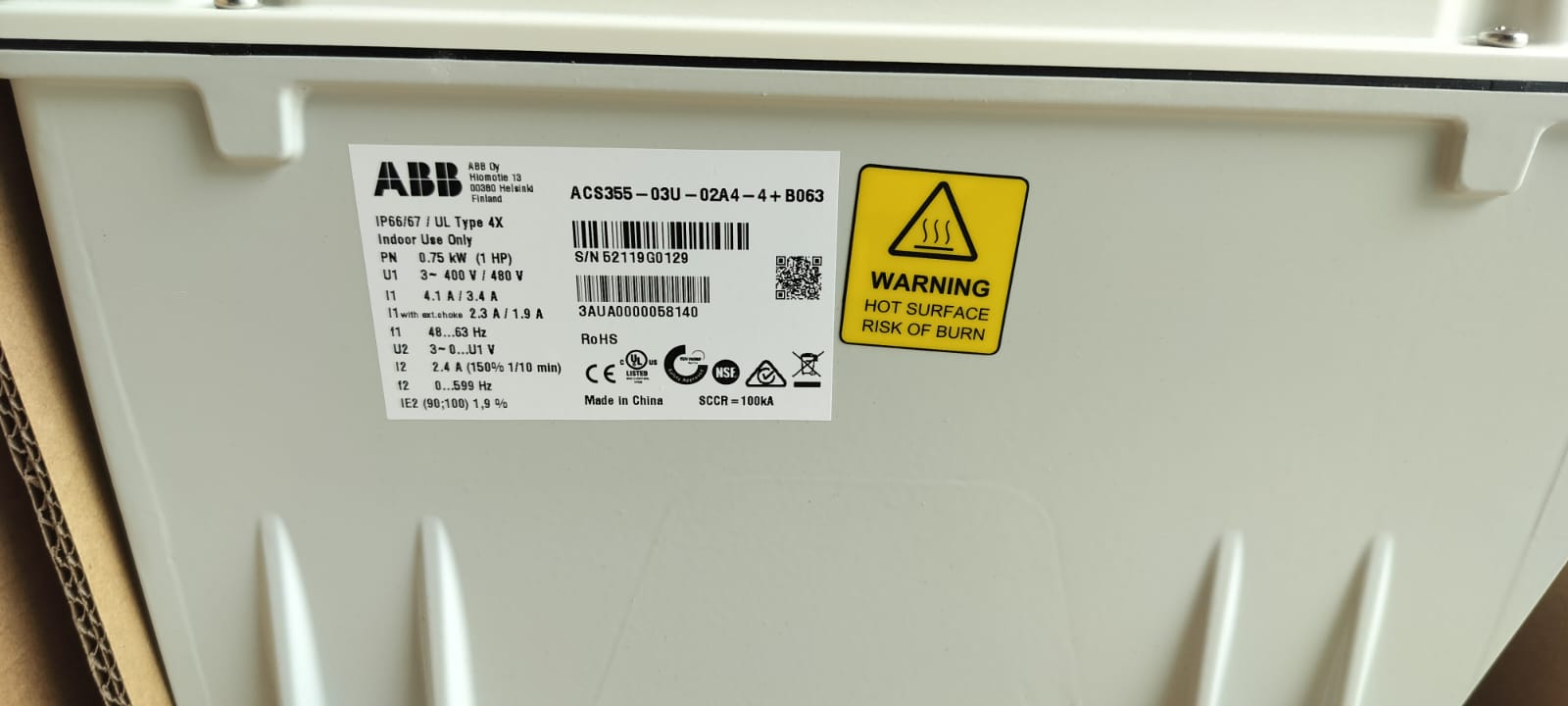 ABB ACS355-03U-02A4-4+B063 Variable Frequency Drive (VFD) – 0.75kW / 1HP